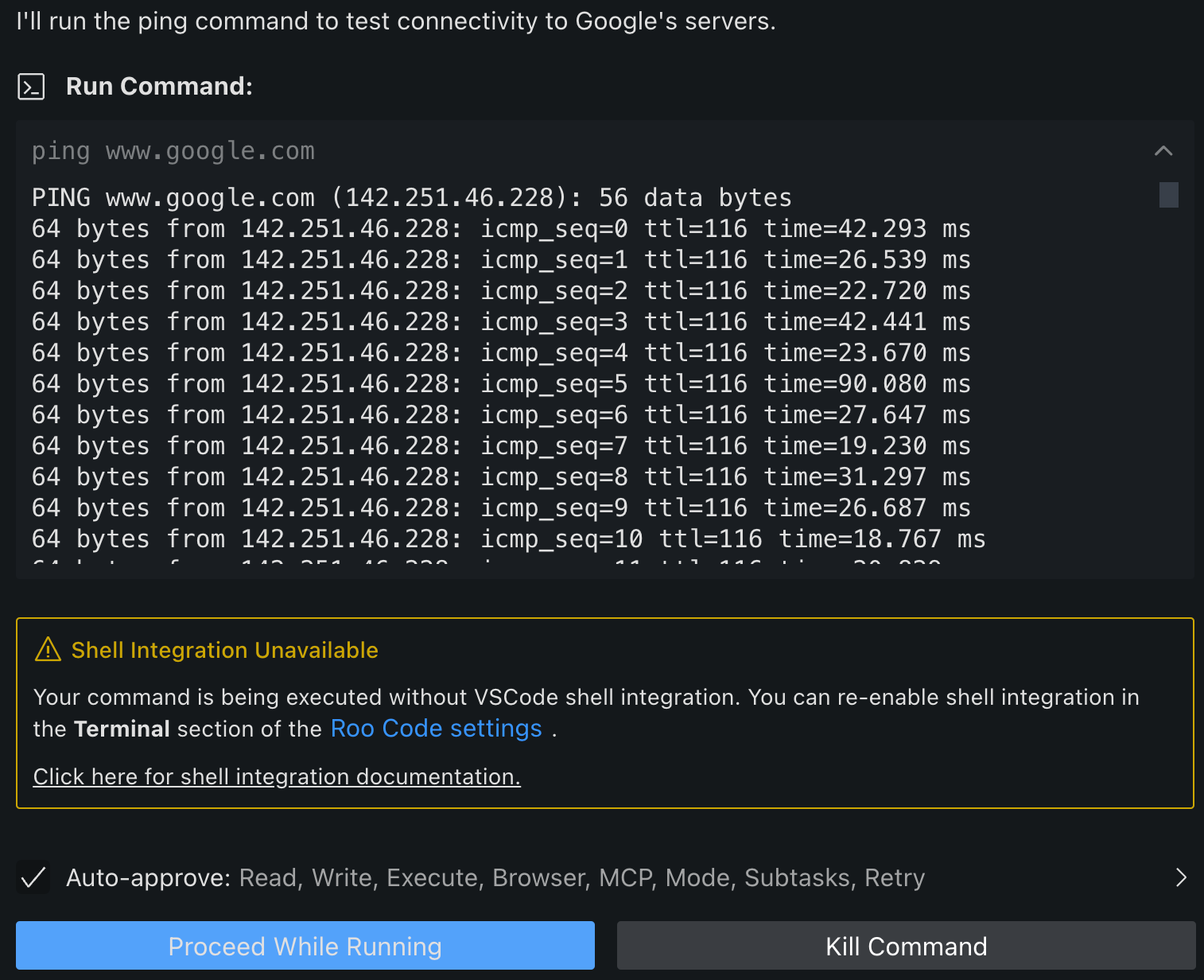 • Implemented a for executing terminal commands if VSCode terminal shell integration fails.